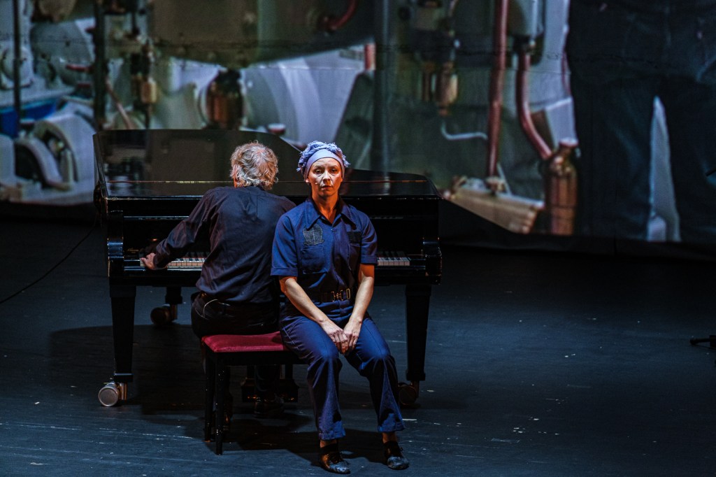 MONTASJAR (constructions) is an interdisciplinary performance that explores the local history of the construction of propellers and gears for large ships in Volda, Norway. In recent times manual labor and art have been separated and placed in different spheres. However, in this piece, the artists attempt to mount them back together by letting images and sounds from the industrial production become part of a performance where music, dance, and film create a dynamic whole, an artistic montage.